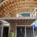 The main project design was made in accordance with Eurocode. Fabrication drawings for steel beams and columns were also provided. This building consists of various materials: a composite floor slab (basement slab; steel-reinforced concrete), steel beams and columns and wooden flooring on upper floors. The total gross building area is approximately 1.200 m2